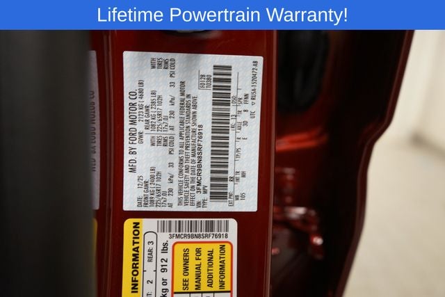 Ruby Red Metallic Tinted Clearcoat 2025 Ford Bronco Sport Big Bend 4D Sport Utility 4WD 8-Speed Automatic 1.5L EcoBoost 25/30 City/Highway MPG