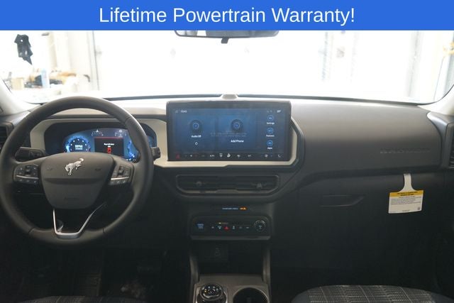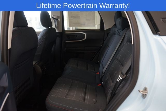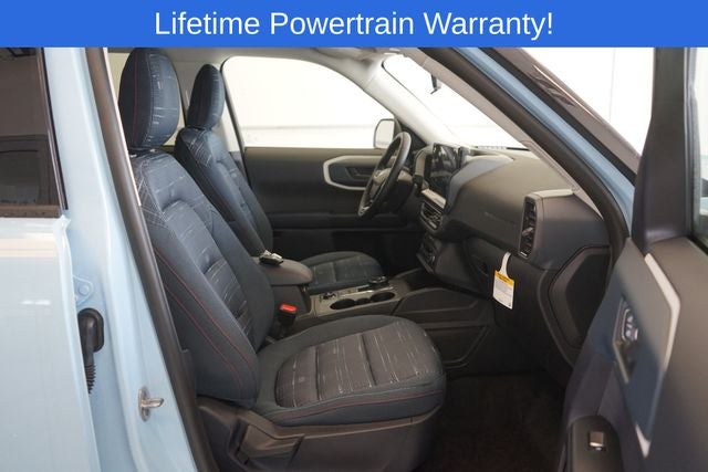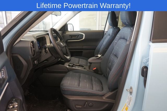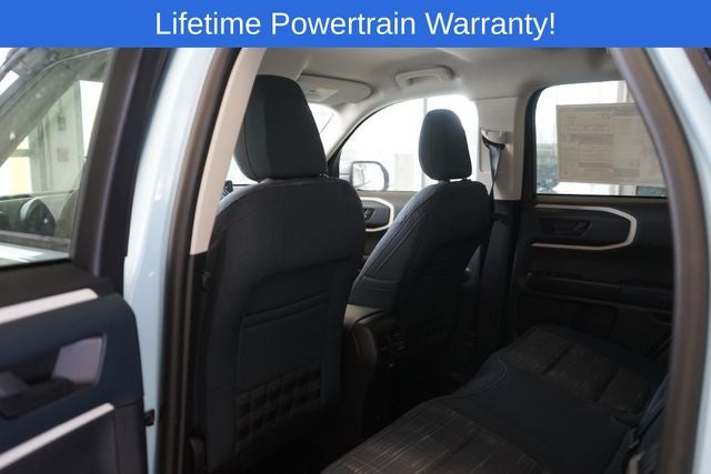 Bronco Sport Heritage is nicely equipped with 4-Wheel Disc Brakes, 6 Speakers, ABS brakes, Air Conditioning, Alloy wheels, AM/FM radio: SiriusXM, AM/FM Stereo, Auto High-beam Headlights, Automatic temperature control, Brake assist, Compass, Delay-off headlights, Driver door bin, Driver vanity mirror, Dual front impact airbags, Dual front side impact airbags, Electronic Stability Control, Emergency communication system: SYNC 4 911 Assist, Four wheel independent suspension, Front anti-roll bar, Front Bucket Seats, Front Center Armrest, Front Driver/Passenger Seat Back Map Pockets, Front reading lights, Fully automatic headlights, Heated door mirrors, Illuminated entry, Knee airbag, Low tire pressure warning, Occupant sensing airbag, Outside temperature display, Overhead airbag, Overhead console, Panic alarm, Passenger door bin, Passenger vanity mirror, Plaid Cloth Front Bucket Seats, Power door mirrors, Power steering, Power windows, Radio data system, Rear anti-roll bar, Rear Parking Sensors, Rear reading lights, Rear seat center armrest, Rear window defroster, Rear window wiper, Remote keyless entry, Security system, SiriusXM, Speed control, Speed-sensing steering, Speed-Sensitive Wipers, Split folding rear seat, Steering wheel mounted audio controls, SYNC 4 w/Enhanced Voice Recognition, Tachometer, Telescoping steering wheel, Tilt steering wheel, Traction control, Trip computer, Variably intermittent wipers, and Wheels: 17 Oxford White-Painted Aluminum.