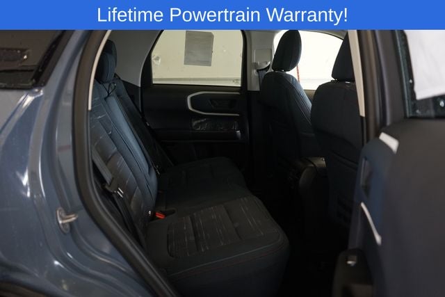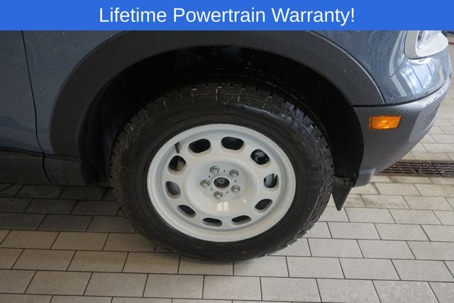 Bronco Sport Heritage is nicely equipped with 4-Wheel Disc Brakes, 6 Speakers, ABS brakes, Air Conditioning, Alloy wheels, AM/FM radio: SiriusXM, AM/FM Stereo, Auto High-beam Headlights, Automatic temperature control, Brake assist, Compass, Delay-off headlights, Driver door bin, Driver vanity mirror, Dual front impact airbags, Dual front side impact airbags, Electronic Stability Control, Emergency communication system: SYNC 4 911 Assist, Four wheel independent suspension, Front anti-roll bar, Front Bucket Seats, Front Center Armrest, Front Driver/Passenger Seat Back Map Pockets, Front reading lights, Fully automatic headlights, Heated door mirrors, Illuminated entry, Knee airbag, Low tire pressure warning, Occupant sensing airbag, Outside temperature display, Overhead airbag, Overhead console, Panic alarm, Passenger door bin, Passenger vanity mirror, Plaid Cloth Front Bucket Seats, Power door mirrors, Power steering, Power windows, Radio data system, Rear anti-roll bar, Rear Parking Sensors, Rear reading lights, Rear seat center armrest, Rear window defroster, Rear window wiper, Remote keyless entry, Security system, SiriusXM, Speed control, Speed-sensing steering, Speed-Sensitive Wipers, Split folding rear seat, Steering wheel mounted audio controls, SYNC 4 w/Enhanced Voice Recognition, Tachometer, Telescoping steering wheel, Tilt steering wheel, Traction control, Trip computer, Variably intermittent wipers, and Wheels: 17 Oxford White-Painted Aluminum.