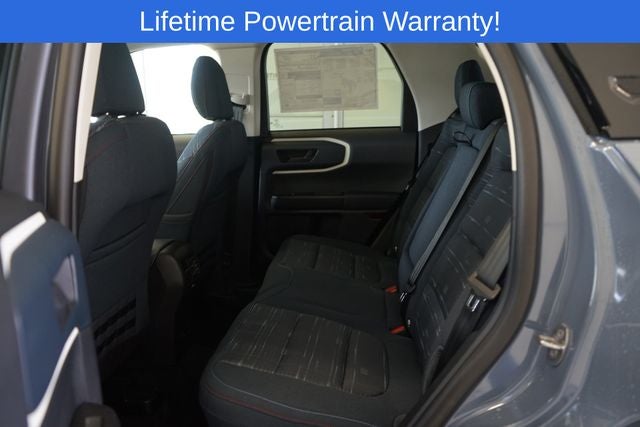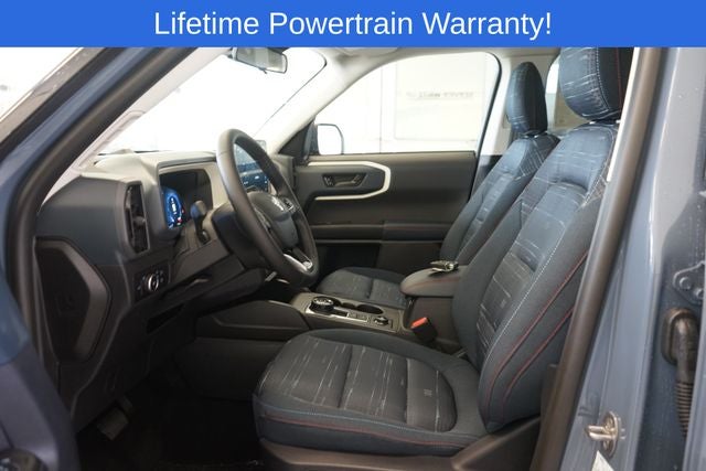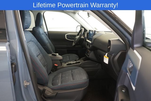 Bronco Sport Heritage is nicely equipped with Convenience Package (Front Driver/Passenger Seat Back Map Pockets, Heated 8-Way Power Driver's Seat, LED Fog Lamps, Premium Wrapped Steering Wheel, and Universal Garage Door Opener (UGDO)), Equipment Group 250A, 4-Wheel Disc Brakes, 6 Speakers, ABS brakes, Air Conditioning, Alloy wheels, AM/FM radio: SiriusXM, AM/FM Stereo, Auto High-beam Headlights, Automatic temperature control, Brake assist, Compass, Delay-off headlights, Driver door bin, Driver vanity mirror, Dual front impact airbags, Dual front side impact airbags, Electronic Stability Control, Emergency communication system: SYNC 4 911 Assist, Four wheel independent suspension, Front & Rear Floor Liners w/o Carpet Mats, Front & Rear Splash Guards, Front anti-roll bar, Front Bucket Seats, Front Center Armrest, Front License Plate Bracket, Front reading lights, Fully automatic headlights, Heated door mirrors, Illuminated entry, Knee airbag, Low tire pressure warning, Occupant sensing airbag, Outside temperature display, Overhead airbag, Overhead console, Panic alarm, Passenger door bin, Passenger vanity mirror, Plaid Cloth Front Bucket Seats, Power door mirrors, Power Moonroof, Power steering, Power windows, Radio data system, Rear anti-roll bar, Rear Parking Sensors, Rear reading lights, Rear seat center armrest, Rear window defroster, Rear window wiper, Remote keyless entry, Security system, SiriusXM, Speed control, Speed-sensing steering, Speed-Sensitive Wipers, Split folding rear seat, Steering wheel mounted audio controls, SYNC 4 w/Enhanced Voice Recognition, Tachometer, Telescoping steering wheel, Tilt steering wheel, Traction control, Trip computer, Variably intermittent wipers, and Wheels: 17 Oxford White-Painted Aluminum.