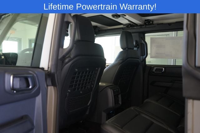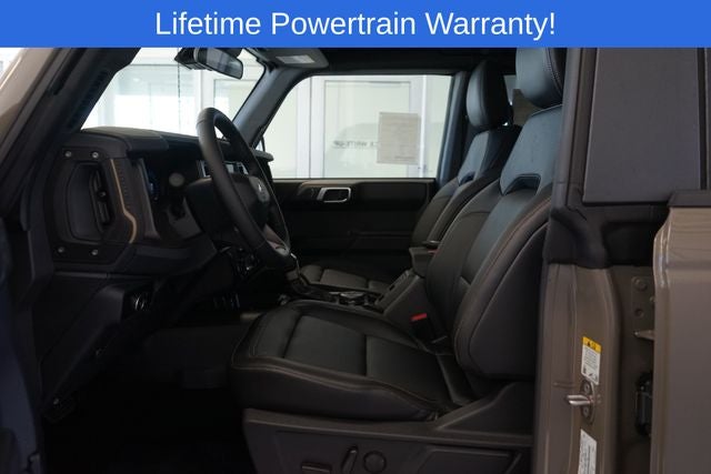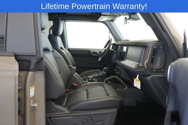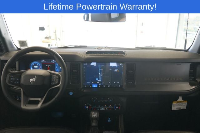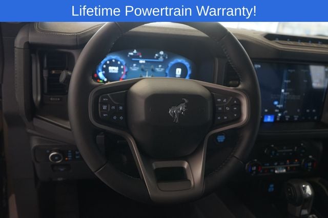 Bronco Badlands is nicely equipped with 4-Wheel Disc Brakes, 4.7 Axle Ratio, 7 Speakers, ABS brakes, Air Conditioning, Alloy wheels, AM/FM radio: SiriusXM with 360L, AM/FM Stereo, Auto High-beam Headlights, Auto-dimming Rear-View mirror, Brake assist, Compass, Delay-off headlights, Driver door bin, Driver vanity mirror, Dual front impact airbags, Dual front side impact airbags, Electronic Stability Control, Emergency communication system: 911 Assist, Exterior Parking Camera Rear, Front anti-roll bar, Front Bucket Seats, Front Center Armrest, Front fog lights, Front reading lights, Front wheel independent suspension, Fully automatic headlights, Heated door mirrors, Heated front seats, Heated steering wheel, Illuminated entry, Integrated roll-over protection, Leather Shift Knob, Low tire pressure warning, Marine Grade Vinyl Heated Bucket Seats, Occupant sensing airbag, Outside temperature display, Overhead airbag, Overhead console, Panic alarm, Passenger door bin, Passenger vanity mirror, Power door mirrors, Power steering, Power windows, Radio data system, Remote keyless entry, Security system, SiriusXM w/360L, Speed control, Split folding rear seat, Steering wheel mounted audio controls, SYNC 4, Tachometer, Telescoping steering wheel, Tilt steering wheel, Traction control, Trip computer, Variably intermittent wipers, Voltmeter, and Wheels: 17 Carbonized Gray-Painted Aluminum.
