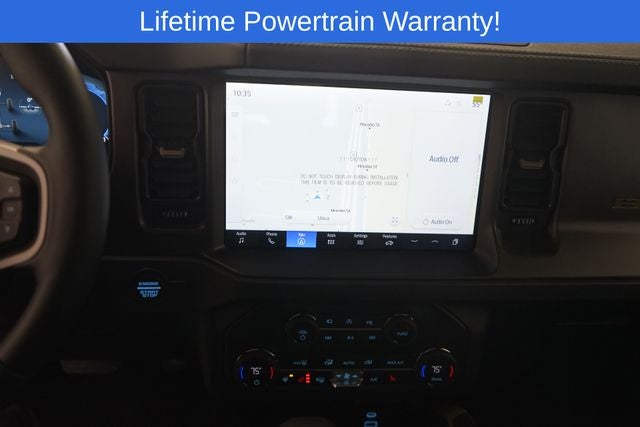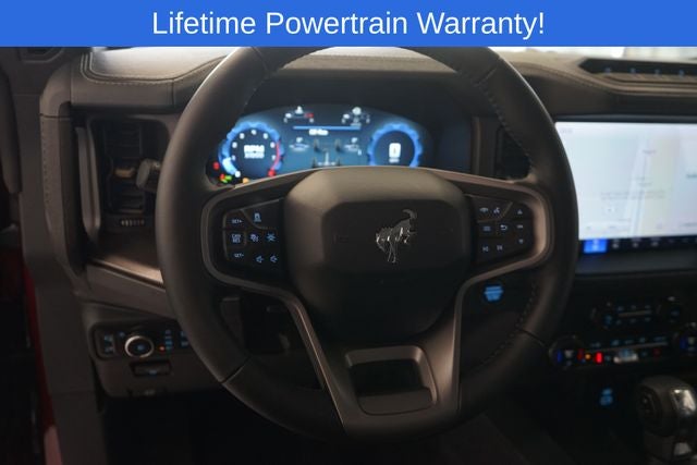 Bronco Badlands is nicely equipped with 4-Wheel Disc Brakes, 4.7 Axle Ratio, 7 Speakers, ABS brakes, Air Conditioning, Alloy wheels, AM/FM radio: SiriusXM with 360L, AM/FM Stereo, Auto High-beam Headlights, Auto-dimming Rear-View mirror, Brake assist, Compass, Delay-off headlights, Driver door bin, Driver vanity mirror, Dual front impact airbags, Dual front side impact airbags, Electronic Stability Control, Emergency communication system: 911 Assist, Exterior Parking Camera Rear, Front anti-roll bar, Front Bucket Seats, Front Center Armrest, Front fog lights, Front reading lights, Front wheel independent suspension, Fully automatic headlights, Heated door mirrors, Heated front seats, Heated steering wheel, Illuminated entry, Integrated roll-over protection, Internet access capable: FordPass Connect, Leather Shift Knob, Low tire pressure warning, Marine Grade Vinyl Heated Bucket Seats, Occupant sensing airbag, Outside temperature display, Overhead airbag, Overhead console, Panic alarm, Passenger door bin, Passenger vanity mirror, Power door mirrors, Power steering, Power windows, Radio data system, Remote keyless entry, Security system, SiriusXM w/360L, Speed control, Split folding rear seat, Steering wheel mounted audio controls, SYNC 4, Tachometer, Telescoping steering wheel, Tilt steering wheel, Traction control, Trip computer, Variably intermittent wipers, Voltmeter, and Wheels: 17 Carbonized Gray-Painted Aluminum.