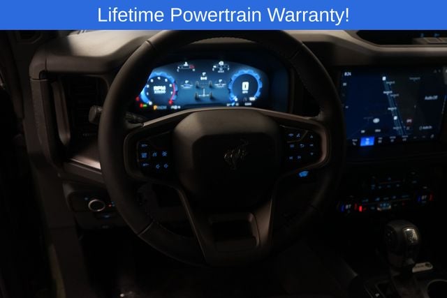Bronco Big Bend is nicely equipped with 4-Wheel Disc Brakes, 4.46 Axle Ratio, 7 Speakers, ABS brakes, Air Conditioning, Alloy wheels, AM/FM radio: SiriusXM with 360L, AM/FM Stereo, Auto High-beam Headlights, Brake assist, Cloth Bucket Seats, Compass, Delay-off headlights, Driver door bin, Driver vanity mirror, Dual front impact airbags, Dual front side impact airbags, Electronic Stability Control, Emergency communication system: 911 Assist, Exterior Parking Camera Rear, Front anti-roll bar, Front Bucket Seats, Front Center Armrest, Front reading lights, Front wheel independent suspension, Fully automatic headlights, Heated door mirrors, Illuminated entry, Integrated roll-over protection, Internet access capable: FordPass Connect, Leather Shift Knob, Low tire pressure warning, Occupant sensing airbag, Outside temperature display, Overhead airbag, Overhead console, Panic alarm, Passenger door bin, Passenger vanity mirror, Power door mirrors, Power steering, Power windows, Radio data system, Remote keyless entry, Security system, SiriusXM w/360L, Speed control, Split folding rear seat, Steering wheel mounted audio controls, SYNC 4, Tachometer, Telescoping steering wheel, Tilt steering wheel, Traction control, Trip computer, Variably intermittent wipers, and Wheels: 17 Carbonized Gray-Painted Aluminum.