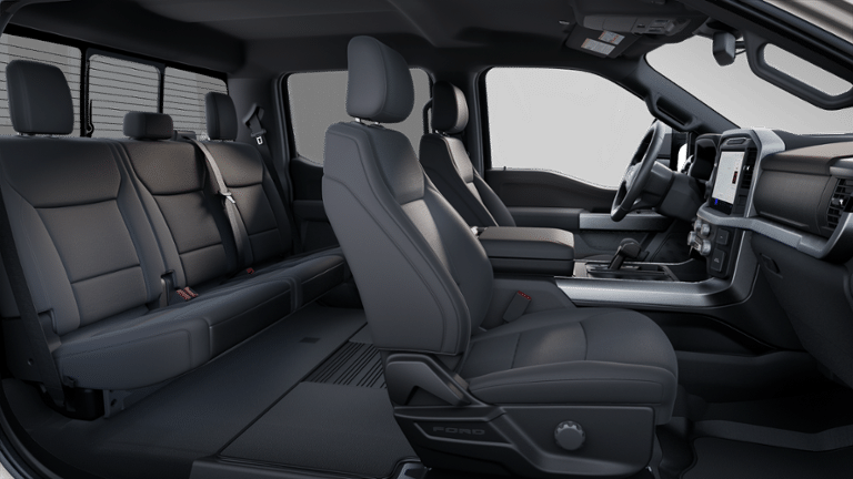 F-150 XLT is nicely equipped with Bed Utility Package (4 Pickup Box Tie-Down Plates, LED Box Lighting, and Tailgate Step w/Tailgate Work Surface), Equipment Group 302A Mid (360 Degree Camera, 400W Cab & Bed Outlets, 6 Angular Bright Anodized Step Bar, Adaptive Cruise Control w/Stop & Go, Auto-Dimming Rear-View Mirror, Black Painted Grille w/Chrome Center Bar, Chrome Door & Tailgate Handles, Chrome Single-Tip Exhaust, Cloth 40/Console/40 Front Seats, Connected Navigation, Driver State Detection, Dual-Zone Electronic Automatic Temperature Control, Evasive Steering Assist, Ford Co-Pilot360 Assist 2.0, Front Parking Sensors, Heated Front Seats, Intelligent Access w/Push Button Start, Power Glass Heated Sideview Mirrors, Power-Sliding Rear Window, Remote Start System w/Remote Tailgate Release, Towing Technology, and Wrapped Steering Wheel), FX4 Off-Road Package, Mobile Office Package (Console Worksurface and Partitioned Lockable Rear Storage), Tow/Haul Package, 4-Wheel Disc Brakes, 6 Speakers, ABS brakes, Air Conditioning, Alloy wheels, AM/FM radio: SiriusXM with 360L, Auto High-beam Headlights, Brake assist, Bumpers: chrome, Chrome wheels, Cloth 40/20/40 Front Seat, Compass, Delay-off headlights, Driver door bin, Driver vanity mirror, Dual front impact airbags, Dual front side impact airbags, Electronic Stability Control, Emergency communication system: SYNC 4 911 Assist, Front anti-roll bar, Front Center Armrest, Front fog lights, Front License Plate Bracket, Front reading lights, Front wheel independent suspension, Fully automatic headlights, Heated door mirrors, Illuminated entry, Internet access capable: FordPass Connect 5G, Low tire pressure warning, Manual-Folding Heated Pwr Glass Trailer Tow Mirror, Occupant sensing airbag, Outside temperature display, Overhead airbag, Overhead console, Panic alarm, Passenger door bin, Passenger vanity mirror, Power door mirrors, Power steering, Power windows, Radio data system, Radio: AM/FM Stereo w/SiriusXM 360L, Rear Parking Sensors, Rear reading lights, Rear step bumper, Rear window defroster, Remote keyless entry, Security system, Speed control, Split folding rear seat, Steering wheel mounted audio controls, SYNC 4 w/Enhanced Voice Recognition, Tachometer, Telescoping steering wheel, Tilt steering wheel, Tough Bed Spray-In Bedliner, Traction control, Trip computer, Variably intermittent wipers, Voltmeter, and Wheels: 18 Chrome-Like PVD.