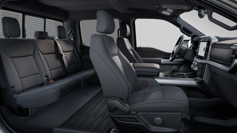 F-150 XLT is nicely equipped with Equipment Group 302A Mid (360 Degree Camera, 400W Cab & Bed Outlets, 6 Angular Bright Anodized Step Bar, Adaptive Cruise Control w/Stop & Go, Auto-Dimming Rear-View Mirror, Black Painted Grille w/Chrome Center Bar, Chrome Door & Tailgate Handles, Chrome Single-Tip Exhaust, Cloth 40/Console/40 Front Seats, Connected Navigation, Driver State Detection, Dual-Zone Electronic Automatic Temperature Control, Evasive Steering Assist, Ford Co-Pilot360 Assist 2.0, Front Parking Sensors, Heated Front Seats, Intelligent Access w/Push Button Start, Power Glass Heated Sideview Mirrors, Power-Sliding Rear Window, Remote Start System w/Remote Tailgate Release, Towing Technology, and Wrapped Steering Wheel), Mobile Office Package (Console Worksurface and Partitioned Lockable Rear Storage), 4-Wheel Disc Brakes, 6 Speakers, ABS brakes, Air Conditioning, Alloy wheels, AM/FM radio: SiriusXM with 360L, Auto High-beam Headlights, BlueCruise (Equipment + 1-Year Plan), Brake assist, Bumpers: chrome, Chrome wheels, Cloth 40/20/40 Front Seat, Compass, Delay-off headlights, Driver door bin, Driver vanity mirror, Dual front impact airbags, Dual front side impact airbags, Electronic Stability Control, Emergency communication system: SYNC 4 911 Assist, Front anti-roll bar, Front Center Armrest, Front fog lights, Front License Plate Bracket, Front reading lights, Front wheel independent suspension, Fully automatic headlights, Heated door mirrors, Illuminated entry, Internet access capable: FordPass Connect 5G, Low tire pressure warning, Occupant sensing airbag, Outside temperature display, Overhead airbag, Overhead console, Panic alarm, Passenger door bin, Passenger vanity mirror, Power door mirrors, Power steering, Power windows, Radio data system, Radio: AM/FM Stereo w/SiriusXM 360L, Rear Parking Sensors, Rear reading lights, Rear step bumper, Rear window defroster, Remote keyless entry, Security system, Speed control, Split folding rear seat, Steering wheel mounted audio controls, SYNC 4 w/Enhanced Voice Recognition, Tachometer, Telescoping steering wheel, Tilt steering wheel, Tough Bed Spray-In Bedliner, Traction control, Tray Style Floor Liner w/Carpet Mats, Trip computer, Variably intermittent wipers, Voltmeter, and Wheels: 18 Chrome-Like PVD.
