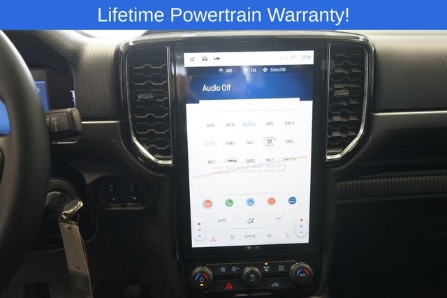 Ranger XLT is nicely equipped with Sport Appearance Package (Gray Painted Center Bar & Grille Surround, Gray Painted Front Fascia & Rear Bumper, and Sport Box Decal), 3.73 Axle Ratio, 4-Wheel Disc Brakes, 6 Speakers, ABS brakes, Air Conditioning, Alloy wheels, AM/FM radio: SiriusXM, AM/FM Stereo, Auto High-beam Headlights, Auto-dimming Rear-View mirror, Brake assist, Cloth Front Bucket Seats, Compass, Delay-off headlights, Driver door bin, Driver vanity mirror, Dual front impact airbags, Dual front side impact airbags, Electronic Stability Control, Emergency communication system: SYNC 4 911 Assist, Front anti-roll bar, Front Bucket Seats, Front Center Armrest, Front fog lights, Front reading lights, Front wheel independent suspension, Fully automatic headlights, Illuminated entry, Internet access capable: FordPass Connect 4G, Leather Shift Knob, Low tire pressure warning, Navigation system: Connected Navigation, Occupant sensing airbag, Outside temperature display, Overhead airbag, Overhead console, Panic alarm, Passenger door bin, Passenger vanity mirror, Power door mirrors, Power steering, Power windows, Rear reading lights, Rear seat center armrest, Rear step bumper, Rear window defroster, Remote keyless entry, Security system, SiriusXM Satellite Radio, Speed control, Speed-sensing steering, Steering wheel mounted audio controls, SYNC 4A w/Connected Navigation, Telescoping steering wheel, Tilt steering wheel, Traction control, Trip computer, Variably intermittent wipers, Voltmeter, and Wheels: 17 Gray-Painted Aluminum.