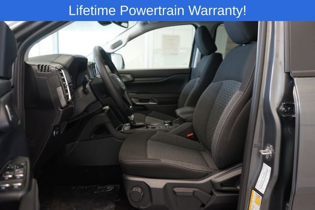 Ranger XLT is nicely equipped with Sport Appearance Package (Gray Painted Center Bar & Grille Surround, Gray Painted Front Fascia & Rear Bumper, and Sport Box Decal), 3.73 Axle Ratio, 4-Wheel Disc Brakes, 6 Speakers, ABS brakes, Air Conditioning, Alloy wheels, AM/FM radio: SiriusXM, AM/FM Stereo, Auto High-beam Headlights, Auto-dimming Rear-View mirror, Brake assist, Cloth Front Bucket Seats, Compass, Delay-off headlights, Driver door bin, Driver vanity mirror, Dual front impact airbags, Dual front side impact airbags, Electronic Stability Control, Emergency communication system: SYNC 4 911 Assist, Front anti-roll bar, Front Bucket Seats, Front Center Armrest, Front fog lights, Front reading lights, Front wheel independent suspension, Fully automatic headlights, Illuminated entry, Internet access capable: FordPass Connect 4G, Leather Shift Knob, Low tire pressure warning, Navigation system: Connected Navigation, Occupant sensing airbag, Outside temperature display, Overhead airbag, Overhead console, Panic alarm, Passenger door bin, Passenger vanity mirror, Power door mirrors, Power steering, Power windows, Rear reading lights, Rear seat center armrest, Rear step bumper, Rear window defroster, Remote keyless entry, Security system, SiriusXM Satellite Radio, Speed control, Speed-sensing steering, Steering wheel mounted audio controls, SYNC 4A w/Connected Navigation, Telescoping steering wheel, Tilt steering wheel, Traction control, Trip computer, Variably intermittent wipers, Voltmeter, and Wheels: 17 Gray-Painted Aluminum.