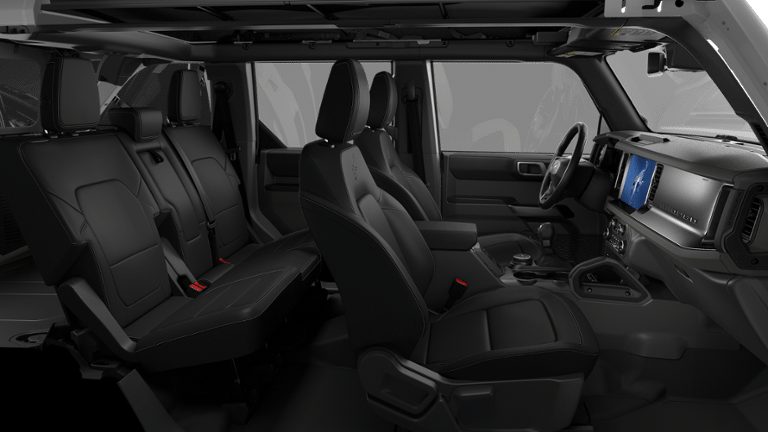 Bronco Outer Banks Advanced is nicely equipped with Ford Connectivity Package (1-Year Included), 18 Bright Machined Aluminum Wheels, 3.73 Axle Ratio, 4-Wheel Disc Brakes, 7 Speakers, ABS brakes, Air Conditioning, Alloy wheels, AM/FM radio: SiriusXM with 360L, AM/FM Stereo, Auto High-beam Headlights, Auto-dimming Rear-View mirror, Automatic temperature control, Brake assist, Compass, Connected Navigation, Delay-off headlights, Driver door bin, Driver vanity mirror, Dual front impact airbags, Dual front side impact airbags, Electronic Stability Control, Emergency communication system: 911 Assist, Exterior Parking Camera Rear, Front anti-roll bar, Front Bucket Seats, Front Center Armrest, Front dual zone A/C, Front fog lights, Front reading lights, Front wheel independent suspension, Fully automatic headlights, Heated door mirrors, Heated front seats, Heated Leather-Trimmed/Vinyl Bucket Seats, Heated steering wheel, Illuminated entry, Integrated roll-over protection, Leather Shift Knob, Low tire pressure warning, Navigation system: Connected Navigation, Occupant sensing airbag, Outside temperature display, Overhead airbag, Overhead console, Panic alarm, Passenger door bin, Passenger vanity mirror, Power door mirrors, Power driver seat, Power passenger seat, Power steering, Power windows, Radio data system, Rear seat center armrest, Remote keyless entry, Security system, SiriusXM with 360L, Speed control, Split folding rear seat, Steering wheel mounted audio controls, SYNC 4, Tachometer, Telescoping steering wheel, Tilt steering wheel, Traction control, Trip computer, Variably intermittent wipers, and Voltmeter.