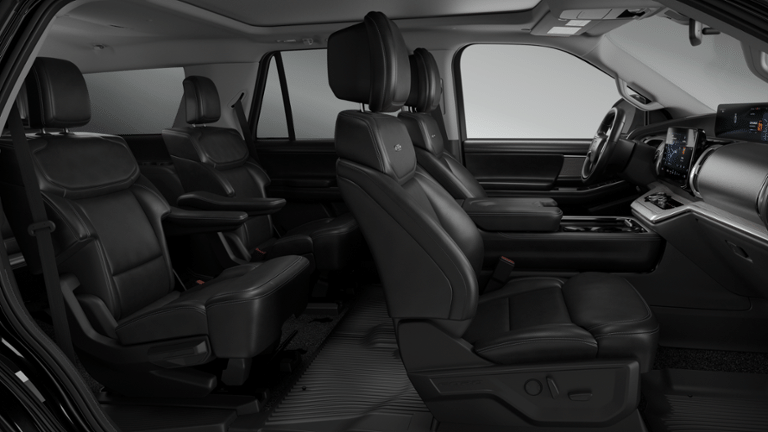 Expedition Platinum is nicely equipped with Ford Connectivity Package (1-Year Included), 10 Speakers, 2nd Row Power-Folding Captain's Chairs, 3.73 Axle Ratio, 3rd row seats: split-bench, 4-Wheel Disc Brakes, ABS brakes, Air Conditioning, Alloy wheels, AM/FM radio: SiriusXM with 360L, Apple CarPlay/Android Auto, Auto High-beam Headlights, Auto-dimming door mirrors, Auto-dimming Rear-View mirror, Automatic temperature control, Brake assist, Bumpers: body-color, Compass, Delay-off headlights, Driver door bin, Driver vanity mirror, Dual front impact airbags, Dual front side impact airbags, Electronic Stability Control, Emergency communication system: 911 Assist, Exterior Parking Camera Rear, Ford Digital Experience, Four wheel independent suspension, Front anti-roll bar, Front Bucket Seats, Front Center Armrest, Front dual zone A/C, Front reading lights, Fully automatic headlights, Garage door transmitter, Genuine wood dashboard insert, Genuine wood door panel insert, Heated and Ventilated Leather Front Captain's Chairs, Heated door mirrors, Heated front seats, Heated rear seats, Heated steering wheel, Illuminated entry, Leather steering wheel, Low tire pressure warning, Memory seat, Navigation System, Occupant sensing airbag, Outside temperature display, Overhead airbag, Overhead console, Panic alarm, Passenger door bin, Passenger vanity mirror, Power door mirrors, Power driver seat, Power moonroof: Vista Roof, Power passenger seat, Power steering, Power windows, Radio data system, Radio: B&O Sound System by Bang and Olufsen, Rain sensing wipers, Rear air conditioning, Rear anti-roll bar, Rear reading lights, Rear window defroster, Rear window wiper, Reclining 3rd row seat, Remote keyless entry, Security system, SiriusXM with 360L, Speed control, Speed-sensing steering, Speed-Sensitive Wipers, Split folding rear seat, Spoiler, Steering wheel memory, Steering wheel mounted audio controls, Tachometer, Telescoping steering wheel, Tilt steering wheel, Traction control, Trip computer, Turn signal indicator mirrors, Variably intermittent wipers, Ventilated front seats, Voltmeter, and Wheels: 20 x 8.5 Ebony Bright Machined Aluminum.
