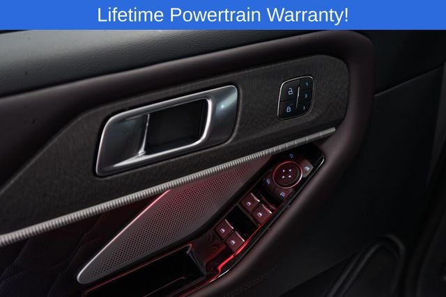 Explorer Platinum is nicely equipped with 14 Speakers, 3rd row seats: bench, 4-Wheel Disc Brakes, ABS brakes, ActiveX Trimmed Captain's Chairs, Air Conditioning, Alloy wheels, AM/FM radio: SiriusXM with 360L, Apple CarPlay/Android Auto, Auto High-beam Headlights, Auto-dimming door mirrors, Auto-dimming Rear-View mirror, Automatic temperature control, Brake assist, Bumpers: body-color, Compass, Delay-off headlights, Driver door bin, Driver vanity mirror, Dual front impact airbags, Dual front side impact airbags, Electronic Stability Control, Emergency communication system: 911 Assist, Exterior Parking Camera Rear, Four wheel independent suspension, Front anti-roll bar, Front Bucket Seats, Front Center Armrest, Front dual zone A/C, Front fog lights, Front reading lights, Fully automatic headlights, Garage door transmitter, Heated door mirrors, Heated front seats, Heated rear seats, Heated steering wheel, Illuminated entry, Knee airbag, Leather steering wheel, Low tire pressure warning, Memory seat, Navigation System, Occupant sensing airbag, Outside temperature display, Overhead airbag, Overhead console, Panic alarm, Passenger door bin, Passenger vanity mirror, Power door mirrors, Power driver seat, Power Liftgate, Power passenger seat, Power steering, Power windows, Radio data system, Radio: B&O Sound System by Bang & Olufsen with HD, Rain sensing wipers, Rear air conditioning, Rear anti-roll bar, Rear reading lights, Rear window defroster, Rear window wiper, Remote keyless entry, Security system, Speed control, Speed-sensing steering, Speed-Sensitive Wipers, Split folding rear seat, Spoiler, Steering wheel mounted audio controls, Tachometer, Telescoping steering wheel, Tilt steering wheel, Traction control, Trip computer, Turn signal indicator mirrors, Variably intermittent wipers, Ventilated front seats, and Wheels: 20 Luster Nickel-Painted Aluminum.