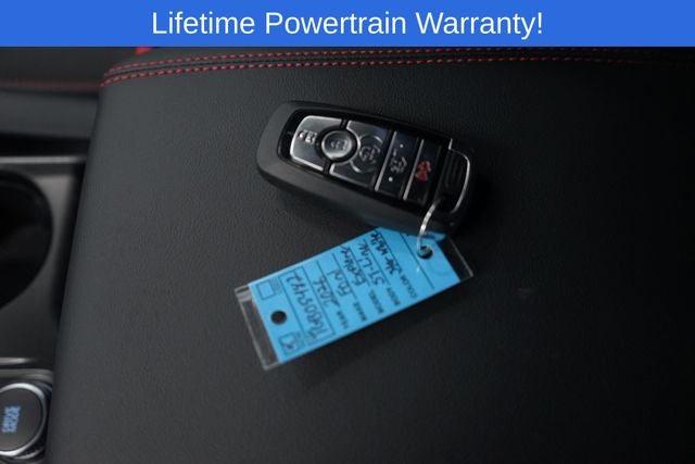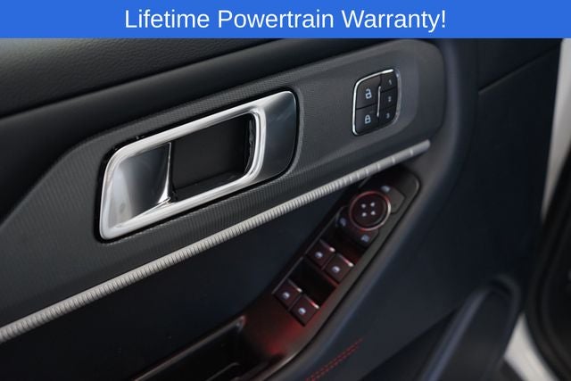Explorer ST-Line is nicely equipped with 10 Speakers, 3rd row seats: bench, 4-Wheel Disc Brakes, ABS brakes, Air Conditioning, Alloy wheels, AM/FM radio: SiriusXM with 360L, Apple CarPlay/Android Auto, Auto High-beam Headlights, Automatic temperature control, Brake assist, Bumpers: body-color, Compass, Delay-off headlights, Driver door bin, Driver vanity mirror, Dual front impact airbags, Dual front side impact airbags, Electronic Stability Control, Emergency communication system: 911 Assist, Exterior Parking Camera Rear, Four wheel independent suspension, Front anti-roll bar, Front Bucket Seats, Front Center Armrest, Front dual zone A/C, Front fog lights, Front reading lights, Fully automatic headlights, Garage door transmitter, Heated door mirrors, Heated front seats, Heated steering wheel, Heated Unique Cloth Captain's Chairs, Illuminated entry, Knee airbag, Leather steering wheel, Low tire pressure warning, Navigation System, Occupant sensing airbag, Outside temperature display, Overhead airbag, Overhead console, Panic alarm, Passenger door bin, Passenger vanity mirror, Power door mirrors, Power driver seat, Power Liftgate, Power passenger seat, Power steering, Power windows, Radio: B&O Sound System by Bang and Olufsen, Rear air conditioning, Rear anti-roll bar, Rear reading lights, Rear window defroster, Rear window wiper, Remote keyless entry, Security system, Speed control, Speed-sensing steering, Speed-Sensitive Wipers, Split folding rear seat, Spoiler, Steering wheel mounted audio controls, Tachometer, Telescoping steering wheel, Tilt steering wheel, Traction control, Trip computer, Variably intermittent wipers, and Wheels: 20 Ebony-Painted Machined Aluminum.
