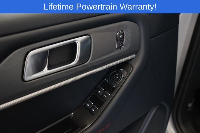 Explorer ST-Line is nicely equipped with 10 Speakers, 3rd row seats: bench, 4-Wheel Disc Brakes, ABS brakes, Air Conditioning, Alloy wheels, AM/FM radio: SiriusXM with 360L, Apple CarPlay/Android Auto, Auto High-beam Headlights, Automatic temperature control, Brake assist, Bumpers: body-color, Compass, Delay-off headlights, Driver door bin, Driver vanity mirror, Dual front impact airbags, Dual front side impact airbags, Electronic Stability Control, Emergency communication system: 911 Assist, Exterior Parking Camera Rear, Four wheel independent suspension, Front anti-roll bar, Front Bucket Seats, Front Center Armrest, Front dual zone A/C, Front fog lights, Front reading lights, Fully automatic headlights, Garage door transmitter, Heated door mirrors, Heated front seats, Heated steering wheel, Heated Unique Cloth Captain's Chairs, Illuminated entry, Knee airbag, Leather steering wheel, Low tire pressure warning, Navigation System, Occupant sensing airbag, Outside temperature display, Overhead airbag, Overhead console, Panic alarm, Passenger door bin, Passenger vanity mirror, Power door mirrors, Power driver seat, Power Liftgate, Power passenger seat, Power steering, Power windows, Radio: B&O Sound System by Bang and Olufsen, Rear air conditioning, Rear anti-roll bar, Rear reading lights, Rear window defroster, Rear window wiper, Remote keyless entry, Security system, Speed control, Speed-sensing steering, Speed-Sensitive Wipers, Split folding rear seat, Spoiler, Steering wheel mounted audio controls, Tachometer, Telescoping steering wheel, Tilt steering wheel, Traction control, Trip computer, Variably intermittent wipers, and Wheels: 20 Ebony-Painted Machined Aluminum.