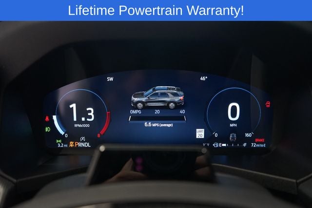 Explorer ST-Line is nicely equipped with 10 Speakers, 3rd row seats: bench, 4-Wheel Disc Brakes, ABS brakes, Air Conditioning, Alloy wheels, AM/FM radio: SiriusXM with 360L, Apple CarPlay/Android Auto, Auto High-beam Headlights, Automatic temperature control, Brake assist, Bumpers: body-color, Compass, Delay-off headlights, Driver door bin, Driver vanity mirror, Dual front impact airbags, Dual front side impact airbags, Electronic Stability Control, Emergency communication system: 911 Assist, Exterior Parking Camera Rear, Four wheel independent suspension, Front anti-roll bar, Front Bucket Seats, Front Center Armrest, Front dual zone A/C, Front fog lights, Front reading lights, Fully automatic headlights, Garage door transmitter, Heated door mirrors, Heated front seats, Heated steering wheel, Heated Unique Cloth Captain's Chairs, Illuminated entry, Knee airbag, Leather steering wheel, Low tire pressure warning, Navigation System, Occupant sensing airbag, Outside temperature display, Overhead airbag, Overhead console, Panic alarm, Passenger door bin, Passenger vanity mirror, Power door mirrors, Power driver seat, Power Liftgate, Power passenger seat, Power steering, Power windows, Radio: B&O Sound System by Bang and Olufsen, Rear air conditioning, Rear anti-roll bar, Rear reading lights, Rear window defroster, Rear window wiper, Remote keyless entry, Security system, Speed control, Speed-sensing steering, Speed-Sensitive Wipers, Split folding rear seat, Spoiler, Steering wheel mounted audio controls, Tachometer, Telescoping steering wheel, Tilt steering wheel, Traction control, Trip computer, Variably intermittent wipers, and Wheels: 20 Ebony-Painted Machined Aluminum.