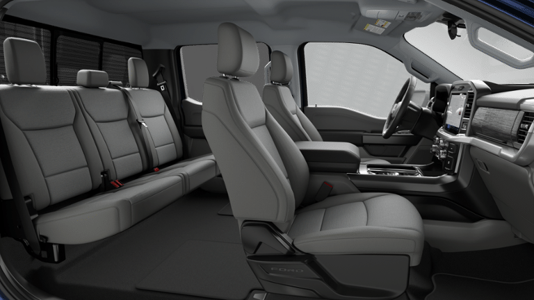 F-150 XLT is nicely equipped with Ford Connectivity Package (1-Year Included), Internet access capable: 5G Modem - Ford Connectivity Package, 18 Painted Aluminum Wheels, 3.31 Axle Ratio, 4-Wheel Disc Brakes, 6 Speakers, ABS brakes, Air Conditioning, Alloy wheels, AM/FM radio: SiriusXM with 360L, Auto High-beam Headlights, Brake assist, Bumpers: body-color, Compass, Delay-off headlights, Driver door bin, Driver vanity mirror, Dual front impact airbags, Dual front side impact airbags, Electronic Stability Control, Emergency communication system: SYNC 4 911 Assist, Front anti-roll bar, Front Center Armrest, Front fog lights, Front reading lights, Front wheel independent suspension, Fully automatic headlights, Heated door mirrors, Illuminated entry, Low tire pressure warning, Occupant sensing airbag, Outside temperature display, Overhead airbag, Overhead console, Panic alarm, Passenger door bin, Passenger vanity mirror, Power door mirrors, Power steering, Power windows, Radio data system, Radio: AM/FM Stereo with SiriusXM 360L, Rear Parking Sensors, Rear reading lights, Rear step bumper, Rear window defroster, Remote keyless entry, Security system, Speed control, Split folding rear seat, Steering wheel mounted audio controls, SYNC 4 with Enhanced Voice Recognition, Tachometer, Telescoping steering wheel, Tilt steering wheel, Traction control, Trip computer, and Variably intermittent wipers.