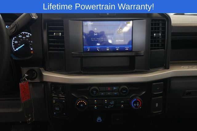 F-350 SuperDuty XL is nicely equipped with Ford Connectivity Package (1-Year Included), GVWR: 10,900 Lb Payload Package, Internet access capable: 5G Modem - Ford Connectivity Package, 190 Amp Alternator, 3.73 Axle Ratio, 4 Speakers, 4-Wheel Disc Brakes, ABS brakes, Air Conditioning, AM/FM radio, Brake assist, Cloth 40/20/40 Split Bench Seat, Compass, Delay-off headlights, Dual front impact airbags, Dual front side impact airbags, Electronic Stability Control, Emergency communication system: SYNC 4 911 Assist, Exterior Parking Camera Rear, Front anti-roll bar, Front Center Armrest w/Storage, Front reading lights, Fully automatic headlights, Heated door mirrors, Illuminated entry, Low tire pressure warning, Outside temperature display, Overhead airbag, Overhead console, Panic alarm, Passenger cancellable airbag, Passenger vanity mirror, Power door mirrors, Power steering, Power windows, Radio: AM/FM Stereo with MP3 Player, Rear step bumper, Remote keyless entry, Security system, Speed control, Steering wheel mounted audio controls, SYNC 4, Tachometer, Telescoping steering wheel, Tilt steering wheel, Traction control, Trip computer, Turn signal indicator mirrors, and Variably intermittent wipers.