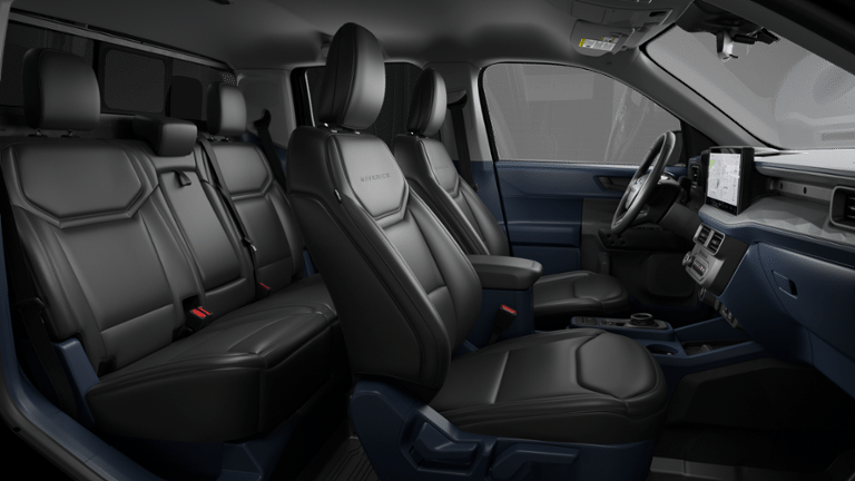 Maverick Lariat is nicely equipped with Ford Connectivity Package (1-Year Included), Internet access capable: 5G Modem - Ford Connectivity Package, 2.91 Axle Ratio, 4-Wheel Disc Brakes, 8 Speakers, ABS brakes, ActiveX Trimmed Heated Front Bucket Seats, Air Conditioning, Alloy wheels, AM/FM radio: SiriusXM with 360L, Apple CarPlay/Android Auto, Auto High-beam Headlights, Automatic temperature control, Brake assist, Bumpers: body-color, Compass, Delay-off headlights, Driver door bin, Driver vanity mirror, Dual front impact airbags, Dual front side impact airbags, Electronic Stability Control, Emergency communication system: SYNC 4 911 Assist, Exterior Parking Camera Rear, Four wheel independent suspension, Front anti-roll bar, Front Bucket Seats, Front Center Armrest, Front dual zone A/C, Front reading lights, Fully automatic headlights, Heated door mirrors, Heated front seats, Heated steering wheel, Illuminated entry, Knee airbag, Low tire pressure warning, Navigation system: Connected Navigation, Occupant sensing airbag, Outside temperature display, Overhead airbag, Overhead console, Panic alarm, Passenger door bin, Passenger vanity mirror, Power door mirrors, Power driver seat, Power steering, Power windows, Radio data system, Radio: B&O Sound System by Bang and Olufsen, Rear anti-roll bar, Rear seat center armrest, Rear step bumper, Remote keyless entry, Security system, SiriusXM with 360L, Speed control, Speed-sensing steering, Steering wheel mounted audio controls, SYNC 4 with Enhanced Voice Recognition, Telescoping steering wheel, Tilt steering wheel, Traction control, Trip computer, and Wheels: 19 Machined Aluminum Painted.