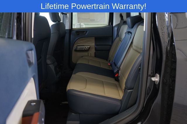 Maverick Lariat is nicely equipped with Ford Connectivity Package (1-Year Included), Internet access capable: 5G Modem - Ford Connectivity Package, 2.91 Axle Ratio, 4-Wheel Disc Brakes, 8 Speakers, ABS brakes, ActiveX Trimmed Heated Front Bucket Seats, Air Conditioning, Alloy wheels, AM/FM radio: SiriusXM with 360L, Apple CarPlay/Android Auto, Auto High-beam Headlights, Automatic temperature control, Brake assist, Bumpers: body-color, Compass, Delay-off headlights, Driver door bin, Driver vanity mirror, Dual front impact airbags, Dual front side impact airbags, Electronic Stability Control, Emergency communication system: SYNC 4 911 Assist, Exterior Parking Camera Rear, Four wheel independent suspension, Front anti-roll bar, Front Bucket Seats, Front Center Armrest, Front dual zone A/C, Front reading lights, Fully automatic headlights, Heated door mirrors, Heated front seats, Heated steering wheel, Illuminated entry, Knee airbag, Low tire pressure warning, Navigation system: Connected Navigation, Occupant sensing airbag, Outside temperature display, Overhead airbag, Overhead console, Panic alarm, Passenger door bin, Passenger vanity mirror, Power door mirrors, Power driver seat, Power steering, Power windows, Radio data system, Radio: B&O Sound System by Bang and Olufsen, Rear anti-roll bar, Rear seat center armrest, Rear step bumper, Remote keyless entry, Security system, SiriusXM with 360L, Speed control, Speed-sensing steering, Steering wheel mounted audio controls, SYNC 4 with Enhanced Voice Recognition, Telescoping steering wheel, Tilt steering wheel, Traction control, Trip computer, and Wheels: 19 Machined Aluminum Painted.
