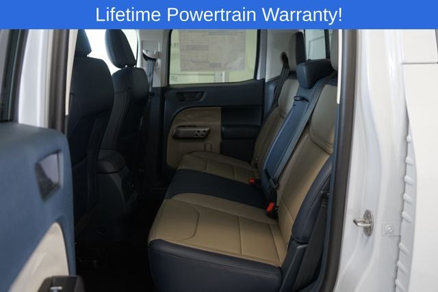 Maverick Lariat is nicely equipped with Ford Connectivity Package (1-Year Included), Internet access capable: 5G Modem - Ford Connectivity Package, 2.91 Axle Ratio, 4-Wheel Disc Brakes, 8 Speakers, ABS brakes, ActiveX Trimmed Heated Front Bucket Seats, Air Conditioning, Alloy wheels, AM/FM radio: SiriusXM with 360L, Apple CarPlay/Android Auto, Auto High-beam Headlights, Automatic temperature control, Brake assist, Bumpers: body-color, Compass, Delay-off headlights, Driver door bin, Driver vanity mirror, Dual front impact airbags, Dual front side impact airbags, Electronic Stability Control, Emergency communication system: SYNC 4 911 Assist, Exterior Parking Camera Rear, Four wheel independent suspension, Front anti-roll bar, Front Bucket Seats, Front Center Armrest, Front dual zone A/C, Front reading lights, Fully automatic headlights, Heated door mirrors, Heated front seats, Heated steering wheel, Illuminated entry, Knee airbag, Low tire pressure warning, Navigation system: Connected Navigation, Occupant sensing airbag, Outside temperature display, Overhead airbag, Overhead console, Panic alarm, Passenger door bin, Passenger vanity mirror, Power door mirrors, Power driver seat, Power steering, Power windows, Radio data system, Radio: B&O Sound System by Bang and Olufsen, Rear anti-roll bar, Rear seat center armrest, Rear step bumper, Remote keyless entry, Security system, SiriusXM with 360L, Speed control, Speed-sensing steering, Steering wheel mounted audio controls, SYNC 4 with Enhanced Voice Recognition, Telescoping steering wheel, Tilt steering wheel, Traction control, Trip computer, and Wheels: 19 Machined Aluminum Painted.