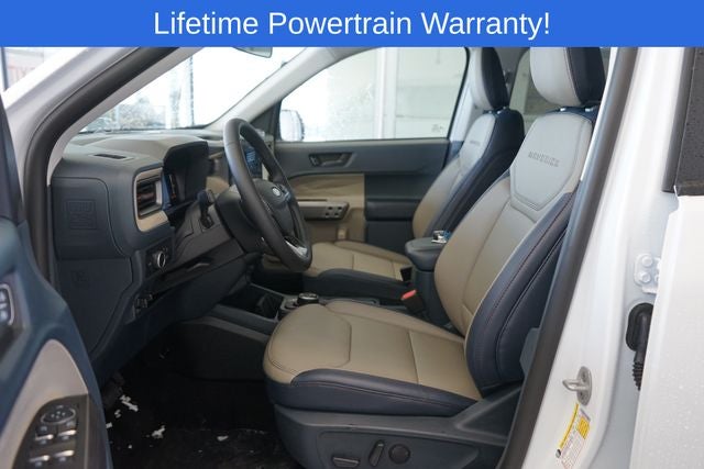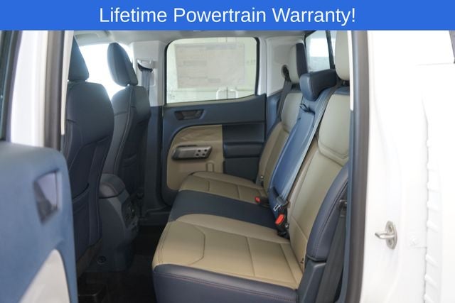 Maverick Lariat is nicely equipped with Ford Connectivity Package (1-Year Included), Internet access capable: 5G Modem - Ford Connectivity Package, 2.91 Axle Ratio, 4-Wheel Disc Brakes, 8 Speakers, ABS brakes, ActiveX Trimmed Heated Front Bucket Seats, Air Conditioning, Alloy wheels, AM/FM radio: SiriusXM with 360L, Apple CarPlay/Android Auto, Auto High-beam Headlights, Automatic temperature control, Brake assist, Bumpers: body-color, Compass, Delay-off headlights, Driver door bin, Driver vanity mirror, Dual front impact airbags, Dual front side impact airbags, Electronic Stability Control, Emergency communication system: SYNC 4 911 Assist, Exterior Parking Camera Rear, Four wheel independent suspension, Front anti-roll bar, Front Bucket Seats, Front Center Armrest, Front dual zone A/C, Front reading lights, Fully automatic headlights, Heated door mirrors, Heated front seats, Heated steering wheel, Illuminated entry, Knee airbag, Low tire pressure warning, Navigation system: Connected Navigation, Occupant sensing airbag, Outside temperature display, Overhead airbag, Overhead console, Panic alarm, Passenger door bin, Passenger vanity mirror, Power door mirrors, Power driver seat, Power steering, Power windows, Radio data system, Radio: B&O Sound System by Bang and Olufsen, Rear anti-roll bar, Rear seat center armrest, Rear step bumper, Remote keyless entry, Security system, SiriusXM with 360L, Speed control, Speed-sensing steering, Steering wheel mounted audio controls, SYNC 4 with Enhanced Voice Recognition, Telescoping steering wheel, Tilt steering wheel, Traction control, Trip computer, and Wheels: 19 Machined Aluminum Painted.