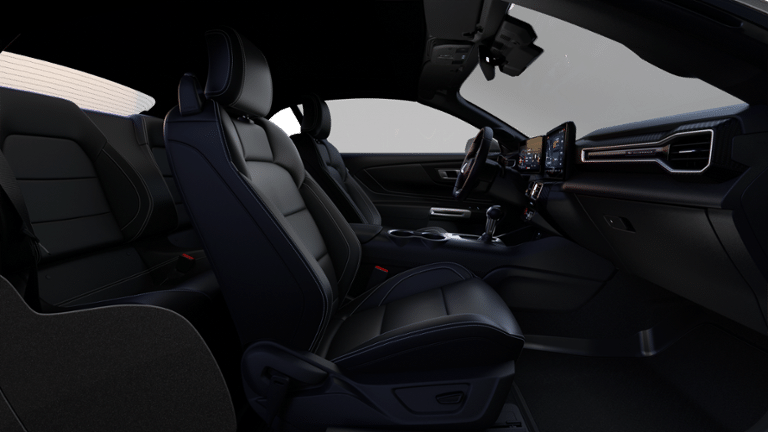 Mustang EcoBoost Premium is nicely equipped with 4-Wheel Disc Brakes, 9 Speakers, ABS brakes, Active Anti-Theft System, Air Conditioning, Alloy wheels, AM/FM radio: SiriusXM with 360L, AM/FM Stereo, Auto High-beam Headlights, Automatic temperature control, Brake assist, Bumpers: body-color, Compass, Convertible roof lining, Delay-off headlights, Driver door bin, Driver vanity mirror, Dual front impact airbags, Dual front side impact airbags, Electronic Stability Control, Emergency communication system: 911 Assist, Exterior Parking Camera Rear, Four wheel independent suspension, Front anti-roll bar, Front Bucket Seats, Front Center Armrest, Front dual zone A/C, Front reading lights, Fully automatic headlights, Glass rear window, Heated front seats, Illuminated entry, Knee airbag, Leather Shift Knob, Low tire pressure warning, Occupant sensing airbag, Outside temperature display, Overhead console, Panic alarm, Passenger door bin, Passenger vanity mirror, Perimeter Alarm, Power convertible roof, Power door mirrors, Power driver seat, Power steering, Power windows, Radio data system, Rain sensing wipers, Rear anti-roll bar, Rear Parking Sensors, Rear window defroster, Remote keyless entry, Security system, Speed control, Speed-sensing steering, Speed-Sensitive Wipers, Sport steering wheel, Steering wheel mounted audio controls, SYNC 4, Tachometer, Telescoping steering wheel, Tilt steering wheel, Traction control, Trip computer, Variably intermittent wipers, and Voltmeter.