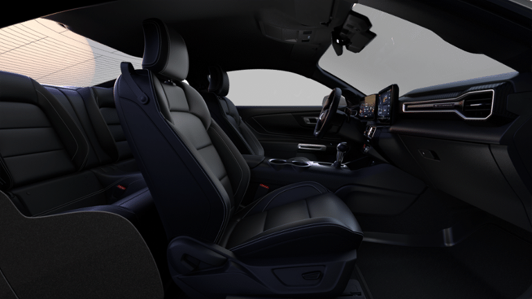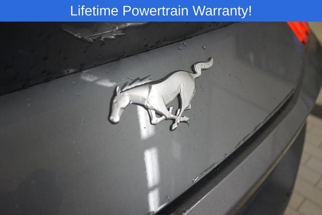 Mustang EcoBoost is nicely equipped with 4-Wheel Disc Brakes, ABS brakes, Air Conditioning, Alloy wheels, AM/FM Stereo, Auto High-beam Headlights, Automatic temperature control, Brake assist, Bumpers: body-color, Compass, Delay-off headlights, Driver door bin, Driver vanity mirror, Dual front impact airbags, Dual front side impact airbags, Electronic Stability Control, Emergency communication system: 911 Assist, Exterior Parking Camera Rear, Four wheel independent suspension, Front anti-roll bar, Front Bucket Seats, Front Center Armrest, Front dual zone A/C, Front reading lights, Fully automatic headlights, Illuminated entry, Knee airbag, Leather Shift Knob, Low tire pressure warning, Occupant sensing airbag, Outside temperature display, Overhead airbag, Overhead console, Panic alarm, Passenger door bin, Passenger vanity mirror, Power door mirrors, Power steering, Power windows, Radio data system, Rain sensing wipers, Rear anti-roll bar, Rear Parking Sensors, Rear window defroster, Remote keyless entry, Speed control, Speed-sensing steering, Speed-Sensitive Wipers, Split folding rear seat, Sport steering wheel, Steering wheel mounted audio controls, SYNC 4, Tachometer, Telescoping steering wheel, Tilt steering wheel, Traction control, Trip computer, Variably intermittent wipers, and Voltmeter.