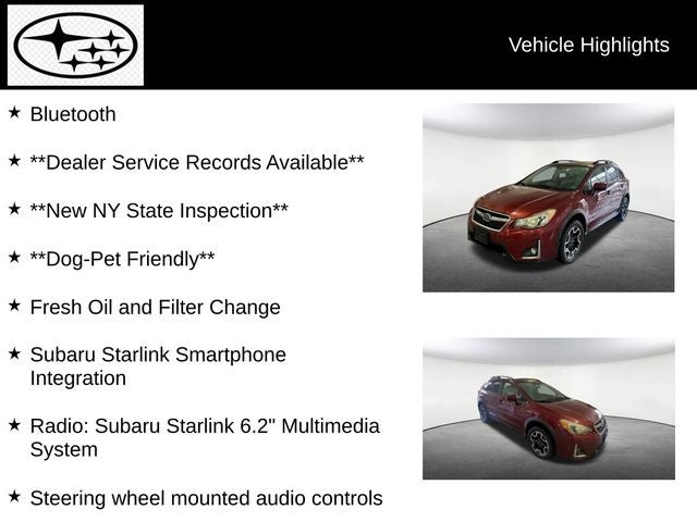Discover the perfect blend of utility and style with this 2017 Subaru Crosstrek 2.0i Premium. Boasting a sleek red exterior and a well-appointed interior, this versatile crossover is ready to elevate your driving experience.