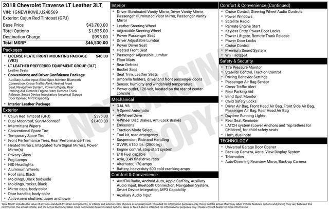 Cajun Red Tintcoat 2018 Chevrolet Traverse 3LT 4D Sport Utility AWD 9-Speed Automatic 3.6L V6 SIDI VVT