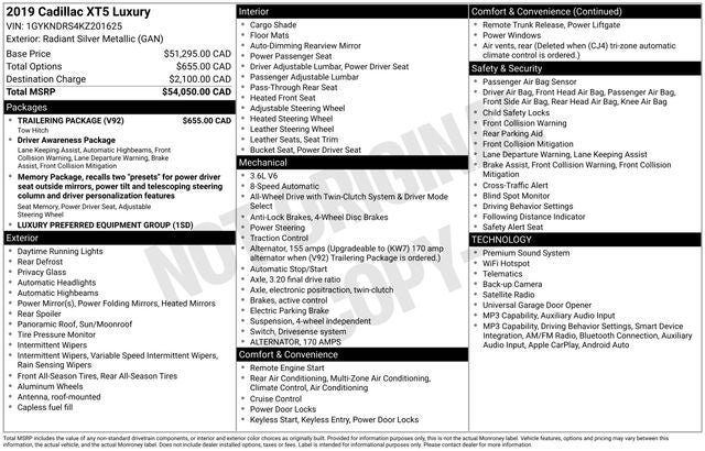 2019 Cadillac XT5 Luxury 4D Sport Utility AWD 8-Speed Automatic 3.6L V6 DI VVT