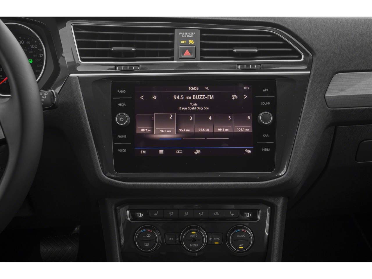 The spacious and well-appointed interior of the Tiguan offers ample room for passengers and cargo, with the available 3rd row seat package providing even more versatility. Enjoy the convenience of remote engine start, the security of a comprehensive roadside assistance kit, and the comfort of heated front seats and dual-zone automatic climate control.