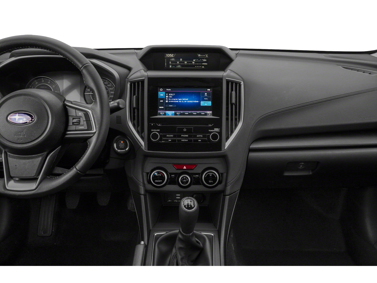 - Radio: Subaru STARLINK 6.5" Multimedia Plus System -inc: AM/FM stereo, HD radio, single disc CD player, MP3/WMA/CRR/RW file capability, multi-touch gesture high resolution 6.5 LCD display screen, Bluetooth® audio streaming connectivity, Bluetooth® hands-free phone connectivity, Bluetooth® hands-free SMS text messaging connectivity (applicable w/compatible cell phone), iPod control capability, rear-vision camera display, SiriusXM All Access radio (subscription required), SiriusXM Travel Link (subscription required), smartphone integration, AHA, Android Auto, CarPlay, Pandora, 6 speakers, 3.5mm auxiliary input jack, dual USB input ports, roof mounted antenna and audio/satellite connected services