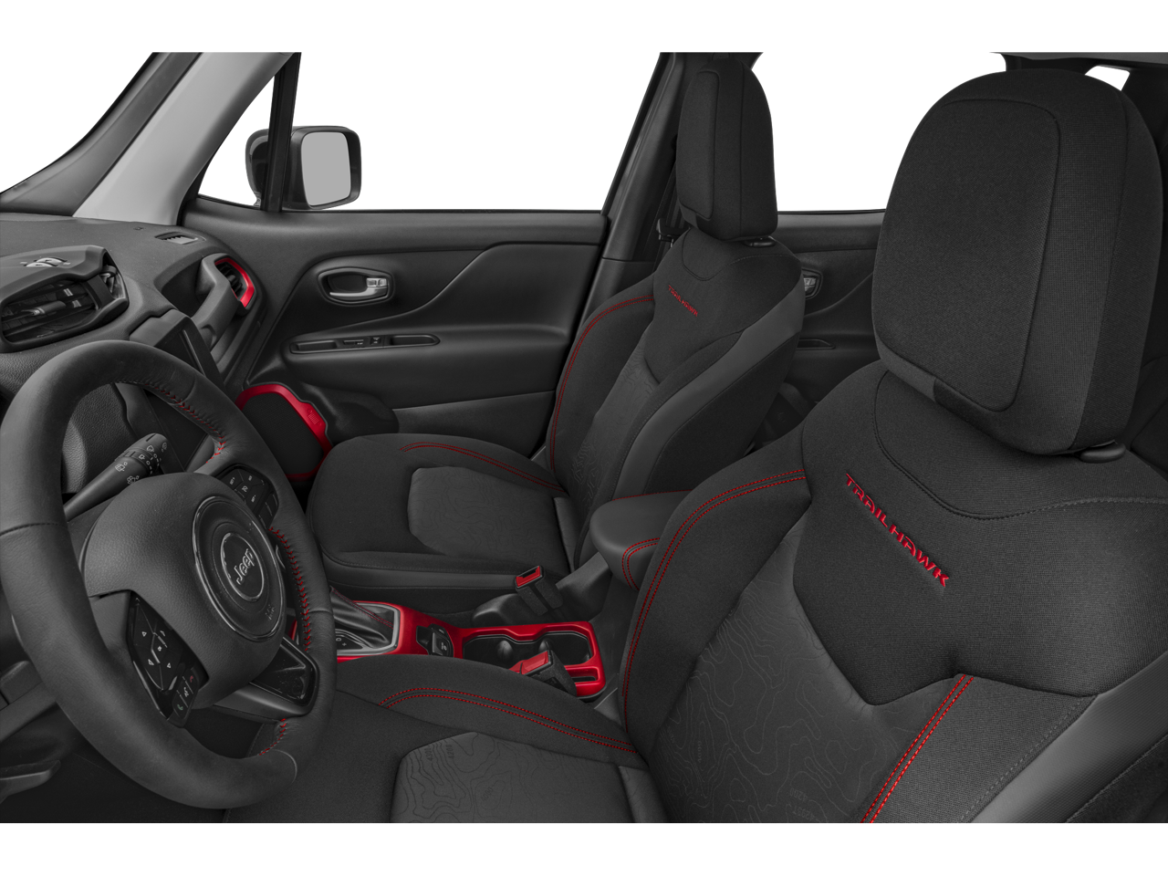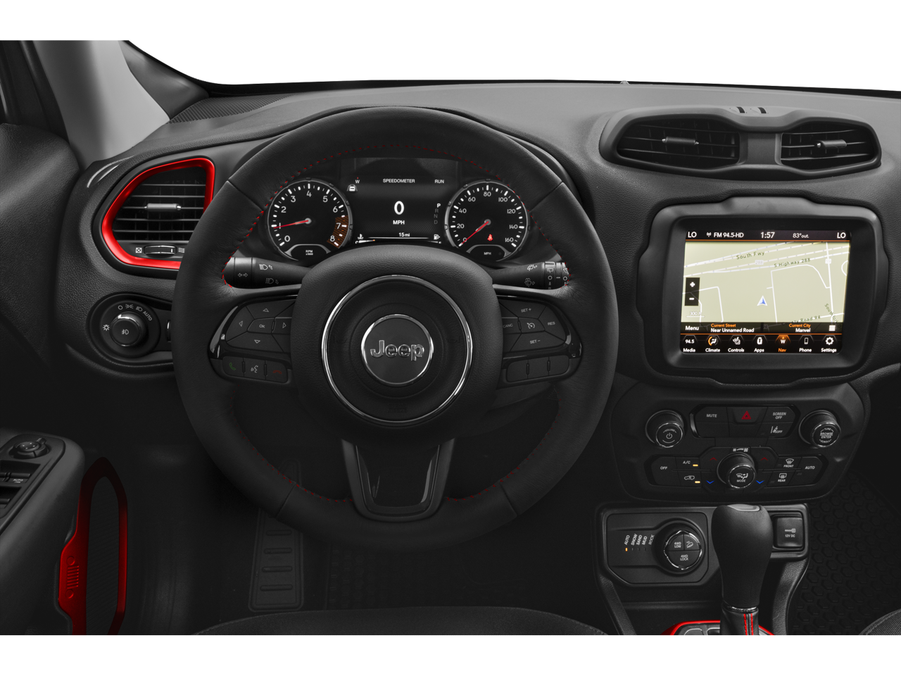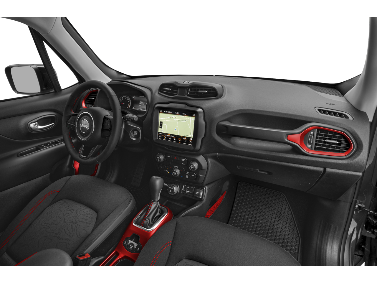Renegade Trailhawk, 4D Sport Utility, 1.3L I4, 9-Speed 948TE Automatic, 4WD, Black Clearcoat, Black Leather, 17 x 6.5 Aluminum Wheels, Apple CarPlay/Android Auto, Auto-dimming Rear-View mirror, Front Bucket Seats, Heated door mirrors, Heated front seats, Heated steering wheel, Navigation System, ParkView Rear Back-Up Camera, Power driver seat, Quick Order Package 22C, Remote keyless entry.