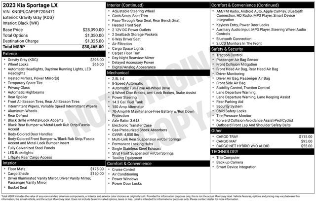 Gravity Gray 2023 Kia Sportage LX 4D Sport Utility AWD 8-Speed Automatic I4 23/28 City/Highway MPG