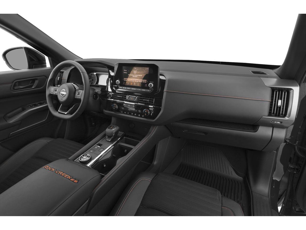 Stepping inside, the Pathfinder Rock Creek's spacious and well-appointed interior offers unparalleled comfort and convenience. Enjoy the convenience of dual-zone climate control, a premium audio system, and the seamless integration of the NissanConnect infotainment system with Apple CarPlay and Android Auto. The generous cargo space and versatile seating configurations make it easy to accommodate all your gear and passengers.