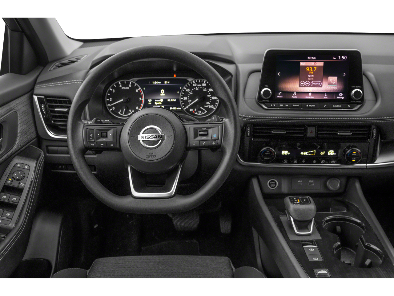 Indulge in the convenience of automatic temperature control, front dual-zone air conditioning, and a power-adjustable driver's seat, ensuring your comfort is uncompromised. Enjoy the intuitive steering wheel-mounted audio controls and the advanced NissanConnect system, which seamlessly integrates with your Apple CarPlay and Android Auto devices.