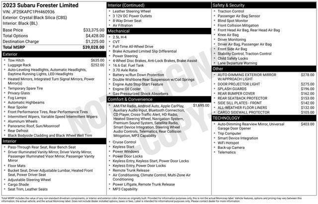Discover the perfect blend of capability, technology, and style with this 2023 Subaru Forester Limited. Boasting a sleek black exterior and a well-appointed interior, this Forester is ready to elevate your driving experience.
