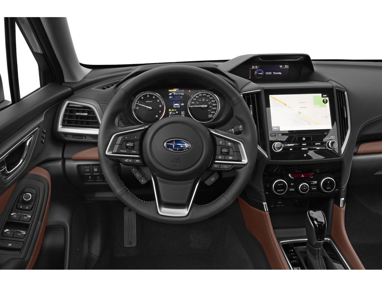 The Forester Touring's interior is a true sanctuary of comfort and convenience. Indulge in the luxurious perforated leather-trimmed upholstery, heated front and rear seats, and the harman/kardon 9-speaker audio system. Stay connected with the Subaru STARLINK 8.0 Multimedia Navigation System, which seamlessly integrates with Apple CarPlay and Android Auto.