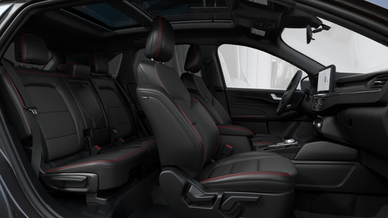 3.81 Axle Ratio, 4-Wheel Disc Brakes, 6 Speakers, ABS brakes, Adaptive Cruise Control w/Stop-and-Go, Air Conditioning, Alloy wheels, AM/FM radio: SiriusXM, AM/FM Stereo, Auto High-beam Headlights, Automatic temperature control, Black Roof-Rack Side Rails, Brake assist, Cold Weather Package, Compass, Connected Navigation, Delay-off headlights, Driver door bin, Driver vanity mirror, Dual front impact airbags, Dual front side impact airbags, Electronic Stability Control, Emergency communication system: SYNC 4 911 Assist, Equipment Group 300A, Ford Co-Pilot360 Assist+, FordPass Connect, Four wheel independent suspension, Front anti-roll bar, Front Bucket Seats, Front Center Armrest, Front dual zone A/C, Front reading lights, Fully automatic headlights, Heated Front Row Seats, Heated Sideview Mirrors, Heated Steering Wheel, Illuminated entry, Intersection Assist, Knee airbag, Low tire pressure warning, Occupant sensing airbag, Outside temperature display, Overhead airbag, Overhead console, Panic alarm, Panoramic Vista Roof, Passenger door bin, Passenger vanity mirror, Power door mirrors, Power driver seat, Power Liftgate, Power steering, Power windows, Predictive Speed Assist, Radio data system, Rear anti-roll bar, Rear Parking Sensor, Rear reading lights, Rear seat center armrest, Rear window defroster, Rear window wiper, Rear-View Camera, Remote keyless entry, Remote Starter System, Speed control, Speed-sensing steering, Speed-Sensitive Wipers, Split folding rear seat, Spoiler, Sport steering wheel, Steering wheel mounted audio controls, SYNC 4, SYNC 4 w/Enhanced Voice Recognition, Tachometer, Tech Pack #1, Telescoping steering wheel, Tilt steering wheel, Traction control, Trip computer, Variably intermittent wipers, Vinyl/Cloth Front Sport Contour Bucket Seats, Wheels: 18 Rock Metallic Painted Aluminum.